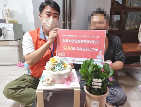 양주시무한돌봄행복센터는 지역 내 저소득 취약계층을 대상으로 월 1회 가가호호 생일잔치를 실시함으로써 저소득 취약계층 사례관리 대상 가구의 외로움과 소외감을 감소시키고, 따뜻한 지역사회 분위기를 조성하는데 앞장서고 있다.