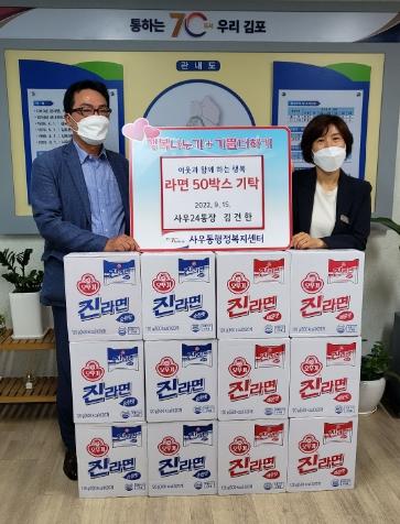 사우동행정복지센터(동장 이영란)는 지난 15일 김건한 통장(사우24통)이 관내 소외된 이웃을 위해 써달라며, 라면 50박스를 기탁했다고 밝혔다.