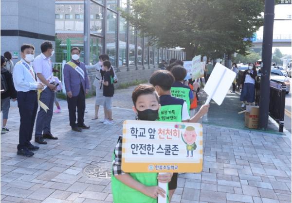 고양특례시 일산동구가 19일 오전 한류초등학교 정문 앞에서 어린이가 안전한 통학로 확보를 위한 교통안전 캠페인을 실시했다.
