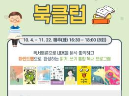 수업은 초등 5~6학년을 대상으로 10월 4일부터 11월 22일까지 매주 화요일 오후 4시 30분부터 6시까지 총 8회에 걸쳐 온라인(Zoom)으로 운영하며 위영화 독서지도 강사가 진행한다.