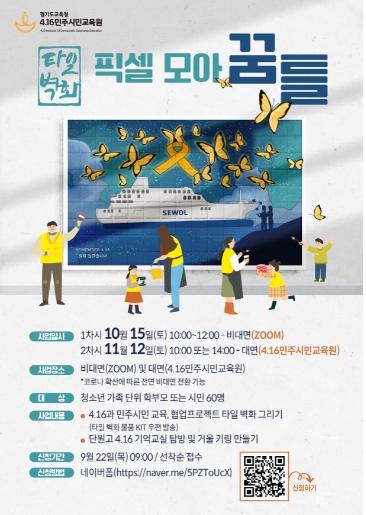 4.16민주시민교육원(원장 전명선)이 21일부터 도내 청소년 자녀를 둔 가족을 대상으로 ‘타일 벽화 픽셀 모아 꿈틀’ 참여 신청을 받는다.