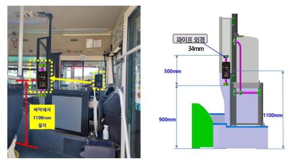 우선 버스 이용객 동선을 고려해 운전석 앞쪽에 있던 단말기를 좌석에 더 가까운 곳으로 위치를 변경하고, 신장(身長)을 토대로 바닥에서 1m 10㎝ 떨어진 높이에 일괄적으로 설치할 수 있도록 한 것이 골자다.