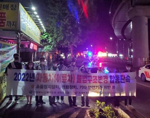 주요 이륜차 불법행위에 해당하는 미승인 안개등 부착, 핸들 튜닝, 소음기(배기구) 불법 튜닝, 굉음 오토바이에 대한 데시벨 측정, 번호판 훼손 등을 집중 단속했으며, LED 부착, 전조등·번호등 고장 여부 점검까지 철저하게 확인했다.