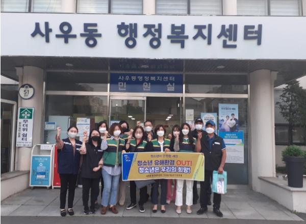 사우동행정복지센터(동장 이영란)는 지난 22일 개학기를 맞아 학교 주변 청소년 유해환경 지도 및 개선 캠페인을 진행했다.