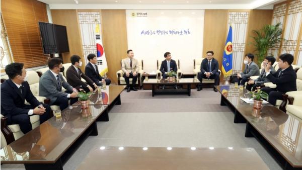 염종현 경기도의회 의장(더민주, 부천1)은 23일 의장 접견실에서 ㈔한국청년회의소(Junior Chamber, JC) 경기지구 임원진과 접견했다.