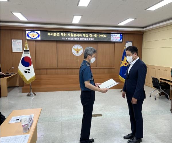 의정부시 흥선동행정복지센터는 9월 23일 의정부경찰서에서 쓰레기집 청소에 큰 도움을 준 의정부중앙로타리클럽 회원 7명에게 감사장을 수여했다고 밝혔다.