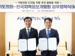 경기도의회(의장 염종현)와 한국지역정보개발원(KLID)이 업무협약을 체결하고, 자치분권 2.0시대를 맞아 ‘지방의회 디지털 전환’을 추진하기 위한 공동의 노력을 기울이기로 했다.