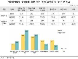 연구원은 경기도 자원봉사 활성화를 위한 정책 방향으로 ▲새로운 패러다임 변화에 부응하여 자원봉사 정책의 영역을 확장 ▲사회적 가치 창출 중심의 프로그램 도입 ▲자원봉사센터의 역할 재정립 ▲자원봉사 민간단체 활성화 ▲새로운 자원봉사 프로그램에 관한 연구 및 개발 ▲전통적 자원봉사 역량 강화 ▲도정 핵심 가치로서 자원봉사 강조 등을 제안했다.