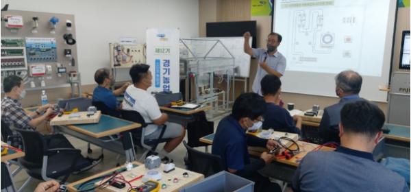 경기도농업기술원은 3월부터 시설하우스 환경관리, 농업 전자전기의 기초, 양액재배 등 21회 84시간의 스마트팜 이론과 실습교육을 진행했으며 현장중심의 문제해결 능력강화를 위해 스마트테스트베드 교육장에서 현장교육을 추진했다.