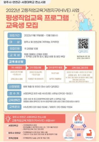 이번 평생직업교육 프로그램은 서정대학교, 연천군과 컨소시엄을 맺어 교육부 공모사업인 고등직업교육거점지구(HiVE)에 선정돼 추진하게 됐다.