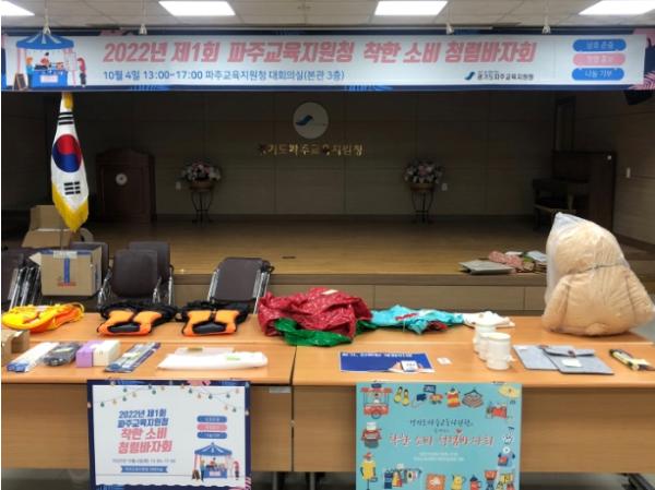 경기도 파주교육지원청은 반부패 청렴 종합 행사로 파주교육지원청 전 직원들을 대상으로 '2022년 제1회 파주교육지원청 착한 소비 청렴바자회' 를 파주교육지원청 3층 대회의실에서 개최했다고 5일 밝혔다.