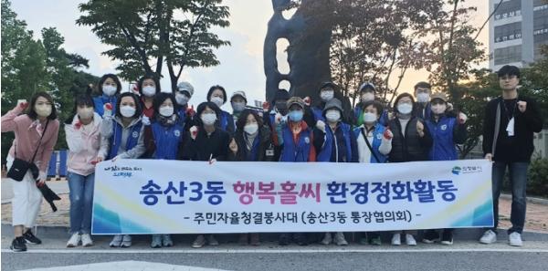 의정부시 송산3동은 10월 6일 오전 7시부터 주민자율청결봉사대(이하 행복홀씨) 회원, 동 직원 등 70여 명이 참여한 가운데 관내 유동인구 밀집지역에 대한 정화활동을 실시했다.