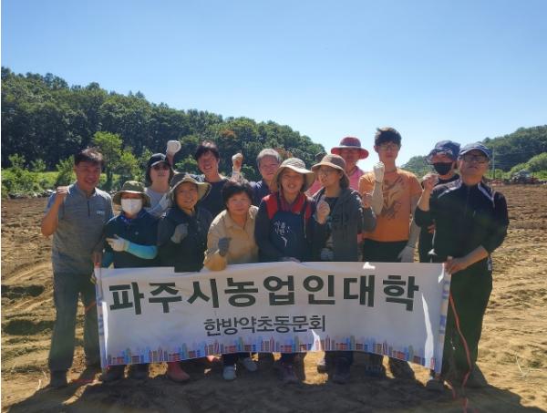 한방약초봉사단은 파주시 농업인대학 허준약초반 수강생으로 구성된 봉사단체로, 코로나19 장기화로 인한 인건비 상승 등으로 일손이 부족해진 농가에 조금이나마 도움이 되고자 봉사활동에 참여하고 있다.