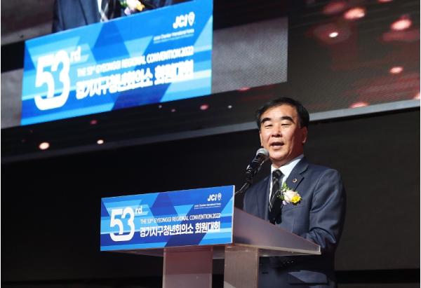 염 의장은 “건강한 활력과 열정으로 우리 사회의 변화를 이끄는 주인공 ‘경기지구청년회의소’ 제53차 지구회원대회를 뜻깊게 여긴다”라며 “책임과 사명감 아래 다양한 활동으로 지역발전의 중심 역할을 해 온 이대일 회장 이하 회원 여러분께 감사드린다”라고 말했다.