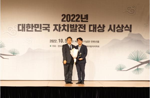 한편, (사)한국자치발전연구원이 주최하는 대한민국 자치발전 대상은 지역의 특색있는 자원을 활용해 지역 발전에 기여한 정책과 자치분권의 모범이 되는 정책 등을 펼쳐온 국회의원 및 지방의원·지방자치단체장·교육감·공무원 등에게 수여한다.