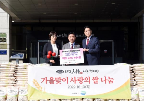 의정부시는 10월 13일 SFG 신화푸드그룹에서 의정부시청을 방문해 백미 464포(1,856kg)을 기부했다고 밝혔다.