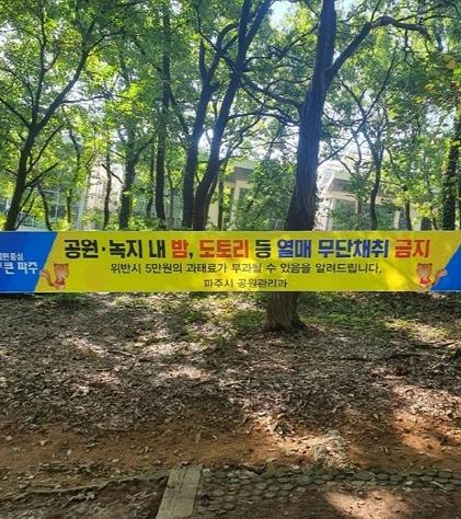 파주시 관계자는 “도시공원 내 서식하는 야생동물을 보호하고 시민의 준법의식 고양을 위해 공원 내 무단채취 행위를 철저히 단속하겠다”고 말했다.