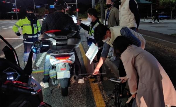 최근 배달 서비스 급증으로 이륜차 소음피해 민원이 증가함에 따라 단속을 실시했으며, 단속 결과 번호판 위반 2건, 안전기준 위반 16건, 불법튜닝 3건 등 총 21건을 적발했다.