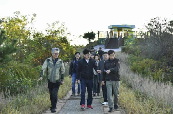 김병수 김포시장은 19일 대곶면에 소재한 승마산을 방문하여 공원녹지과에서 조성 완료한 승마산 억새 숲길의 현장 행정을 실시했다.