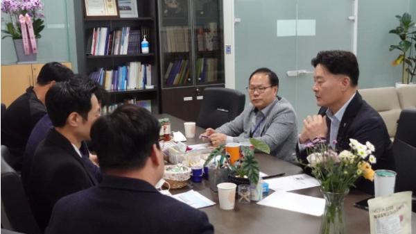 최종현 경기도의회 보건복지위원장(더불어민주당, 수원7)은 25일 경기도의회 보건복지위원장실에서 박재용 경기도의원(더불어민주당, 비례), 사단법인 한국UAM협회(Korean Urban Air Mobility Association) 정진욱 사무국장 등 관계자와 드론을 활용한 노인과 장애인 등 취약계층 복지지원을 주제로 정담회를 가졌다.