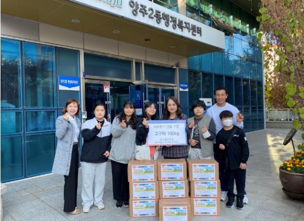 양주시 양주2동 행정복지센터(동장 송미애)는 지난 25일 경기꿈의학교 ‘팜 패밀리’와‘요리쿡! 놀이콕!’에서 관내 어려운 이웃을 위한 고구마 100kg을 전달했다고 밝혔다.