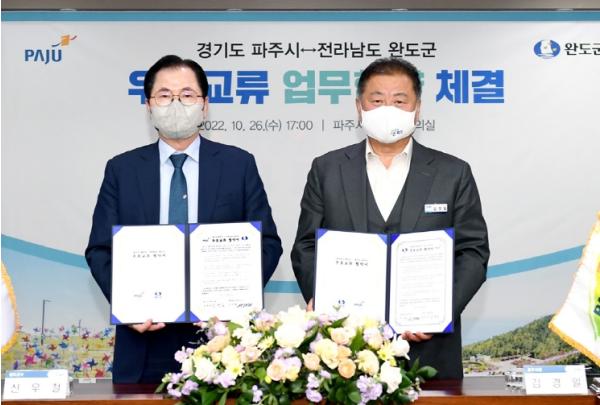 파주시는 26일 전라남도 완도군과 상호발전을 위한 우호교류 업무협약을 체결했다.