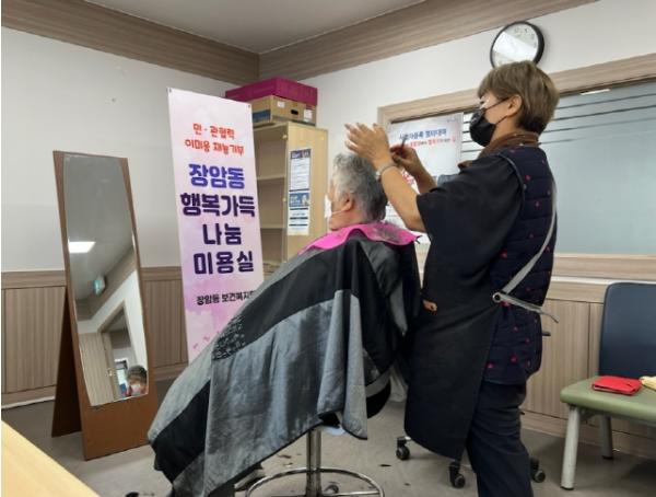 의정부시 장암동 주민센터는 25일 어르신을 위한 이·미용 재능기부 행사인 ‘행복가득 나눔미용실’을 운영했다.