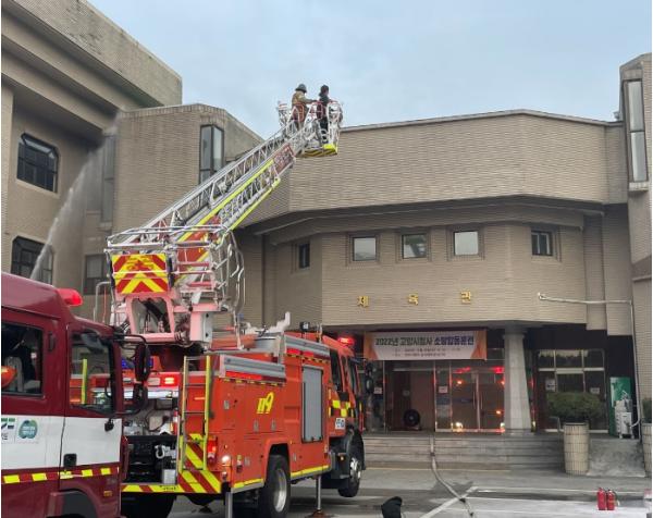 고양특례시는 지난 26일 시청 체육관 앞에서 시청 전 부서 직원이 참여한 가운데 고양소방서와 함께 소방합동훈련을 실시했다고 27일 밝혔다.