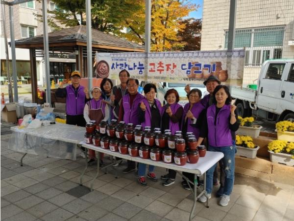대화동 주민자치회는 지난 26일 대화동 행정복지센터 옆 가와지광장에서 주민자치회 위원 등 10여 명이 참석한 가운데 고추장을 담가 취약계층 50가구에 전달하는 나눔 행사를 개최했다.