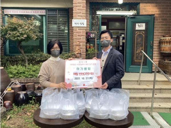 의정부시 신곡1동에 소재한 하가쌈밥은 10월 27일 신곡1동 행정복지센터에 손수 만든 반찬 20인분을 기부했다.