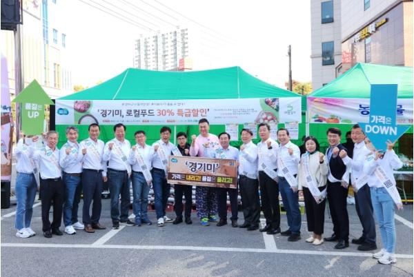 최근 곡물가 상승에 따른 도내 농민들의 어려움에 동참하고자 경기도의회 농정해양위원회(위원장 김성남, 국민의힘, 포천2)는 28일 포천 소흘농협 하나로마트 로컬푸드직매장 앞에서 ‘경기미 팔아주기 행사’에 참석하여, 관련 행사를 축하하고 관계자들을 격려했다.