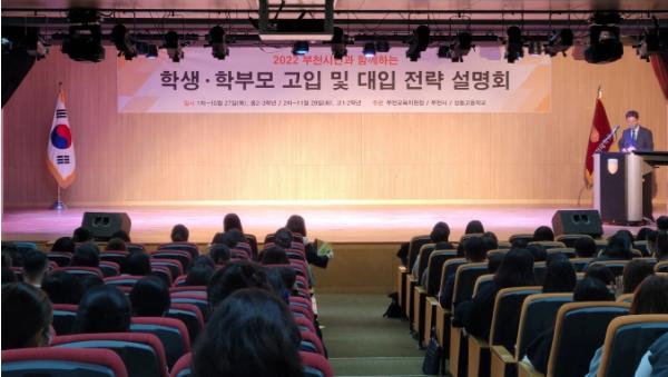부천시가 지원하고 부천교육지원청과 상동고등학교가 주관하는 ‘학생·학부모 고입 및 대입 전략 설명회’가 지난 10월 27일 오후 7시에 부천대학교 한길아트홀에서 성료됐다.
