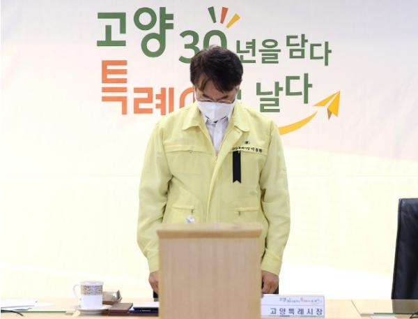 이동환 고양특례시장은 회의에 앞서 간부공무원들과 이태원 참사 사망자들을 애도하는 묵념을 한 후 “현재까지 고양시민 사망자가 8명으로 파악되고 있다. 유가족들과 부상자들을 위한 가능한 지원방안에 적극 대처하고 타 지역 사망자들의 원활한 이송지원에도 정성을 다하라”면서 “국가애도기간 동안 엄중한 인식을 가지고 필요한 모든 조치를 강구하라”고 지시했다.