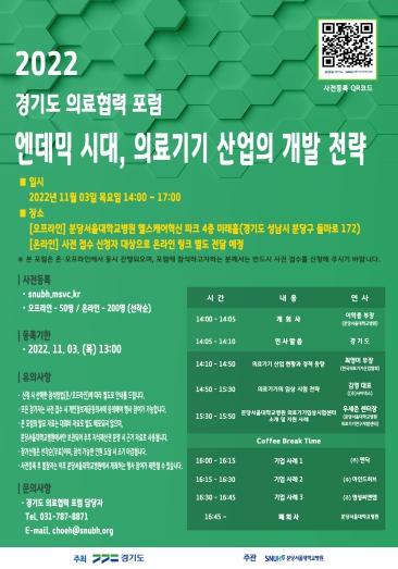 경기도가 3일 성남 분당서울대학교병원에서 ‘엔데믹 시대, 의료기기 산업의 개발전략’을 주제로 경기도 의료협력 정기포럼을 개최한다.