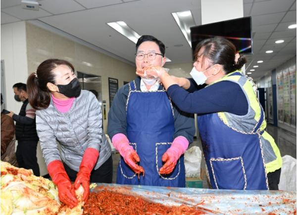 강수현 양주시장은 “경기침체로 기업과 단체의 김장김치 후원이 대폭 감소하고 태풍으로 배추 가격이 크게 인상되는 등 어려운 경제 여건 속에서도 외로운 이웃을 위해 김장김치를 나눠주며 솔선수범한 회천2동 주민자치위원회에 감사드린다”고 말했다.