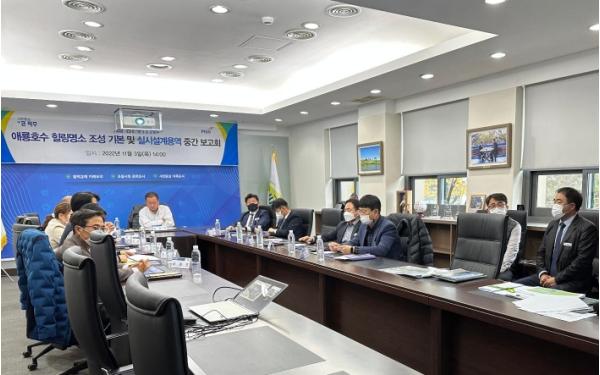 이날 중간보고회에는 김경일 파주시장을 비롯해 관련 국장, 유관기관 등이 참석한 가운데 애룡호수 힐링명소조성 사업의 취지와 장래 교통수요를 대비한 주차공간 확보 등 이용자 중심의 사업추진을 위한 다양한 의견을 나눴다.