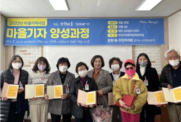 고양특례시 일산서구 탄현1동 주민자치회는 지난 4일 2022년 교육홍보분과 자치계획 사업으로 시작한 ‘나, 마을신문 기자야~!’ 마을기자 양성과정 수료식을 열고, 수료생들에게 수료증과 명예마을기자 증을 수여했다.