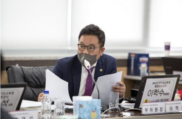 경기도의회 교육기획위원회 이학수 의원(국민의힘, 평택5)은 11월 7일(월) 경기도의회 제365회 정례회 중 김포교육지원청에서 열린 부천ㆍ양평ㆍ김포교육지원청을 대상으로 한 경기도교육청 행정사무감사에서 시?군과 대응 투자 예산 사업으로 학교 시설공사 진행 시 과도한 행정 업무 부담 문제를 제기했다.