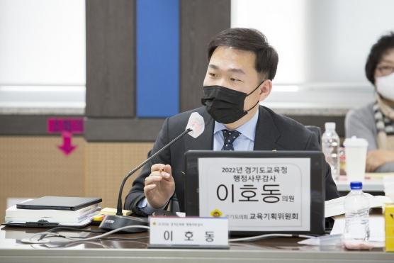 경기도의회 교육기획위원회 이호동 의원(국민의힘, 수원8)은 11월 7일(월) 경기도의회 제365회 정례회 중 김포교육지원청에서 열린 부천ㆍ양평ㆍ김포교육지원청을 대상으로 한 경기도교육청 행정사무감사에서 학교 폭력 갈등 조정 센터를 통해 학교 폭력사안의 여부를 가릴 필요가 있음을 지적하고 학부모를 포함한 학교 구성원 전체의 공감대 형성의 중요성을 강조했다.
