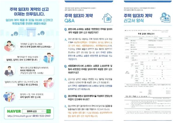 구청 관계자는 “덕양구청은 관내 행정복지센터 및 구청에 주택임대차 신고제에 대한 홍보물을 비치해 방문하는 민원인에게 배부하고 있다.”라며 “주택임대차 계약 신고제가 의무화됨에 따라 미신고, 지연신고 등에 따른 시민 불이익이 최소화 될 수 있도록 지속적인 홍보 및 안내에 힘쓰겠다.”라고 말했다.