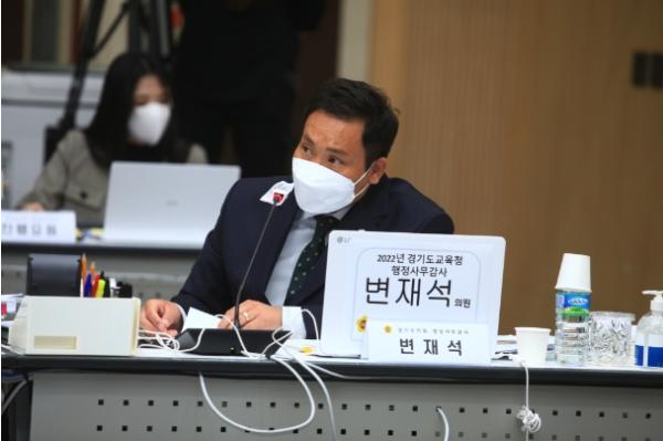 경기도의회 교육기획위원회 변재석 의원(더불어민주당, 고양1)은 11월 8일 경기도의회 제365회 정례회 중 안산교육지원청에서 열린 안산ㆍ성남ㆍ화성오산ㆍ용인ㆍ시흥교육지원청을 대상으로 한 경기도교육청 행정사무감사에서 성남 관내 학교 건축물 위험성 관리 전반에 대해 지적했다.