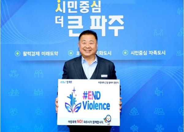 김경일 파주시장이 11월 19일 ‘세계 아동 학대 예방의 날’을 앞두고 7일 아동폭력 근절을 위한 ‘END Violence’ 릴레이 챌린지 캠페인에 동참했다.