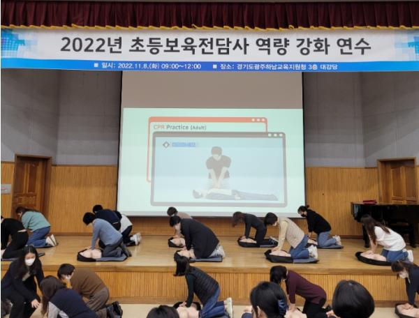 경기도광주하남교육지원청은 11월 8일 관내 초등보육전담사 141명을 대상으로 안전분야 역량 강화를 위한 응급처치 교육을 실시했다.