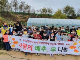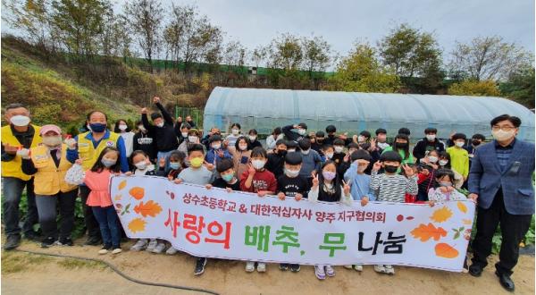 상수초등학교는 배추 100포기와 무 80여 개를 대한적십자사 양주 지구협의회에 기부했다.