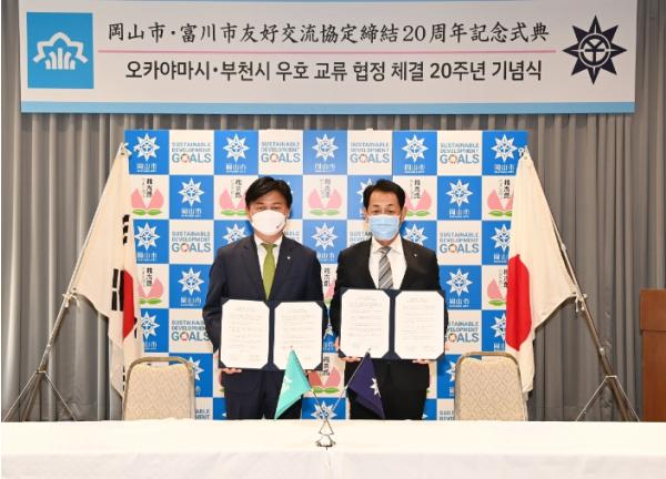부천시와 오카야마시는 2002년 우호교류협정체결 이래로 행정·문화·경제·청소년 등 다양한 분야에서 교류하며 협력관계를 쌓아왔으며, 코로나19로 어려운 상황에서도 비대면 정책간담회, 청소년 교류, 수출상담회 등을 통해 상호 발전적 교류를 이어가고 있다.