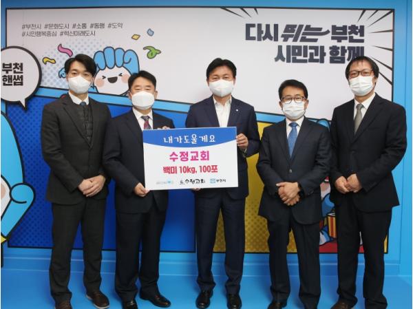 부천시는 지난 14일 수정교회에서 어려운 이웃을 돕고 싶다며 쌀 100포를 시에 기탁했다고 밝혔다.