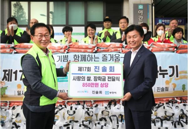 지난 15일 진솔회에서 저소득 취약계층 지원을 위해 쌀, 라면, 온누리 상품권 등 850만원 상당의 물품과 장학금을 부천시에 전달했다.