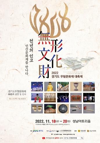 경기도가 11월 18일부터 20일까지 성남아트리움에서 경기도무형문화재 68개 종목을 대중에 공개하는 ‘2022 경기도 무형문화재 대축제’를 개최한다.