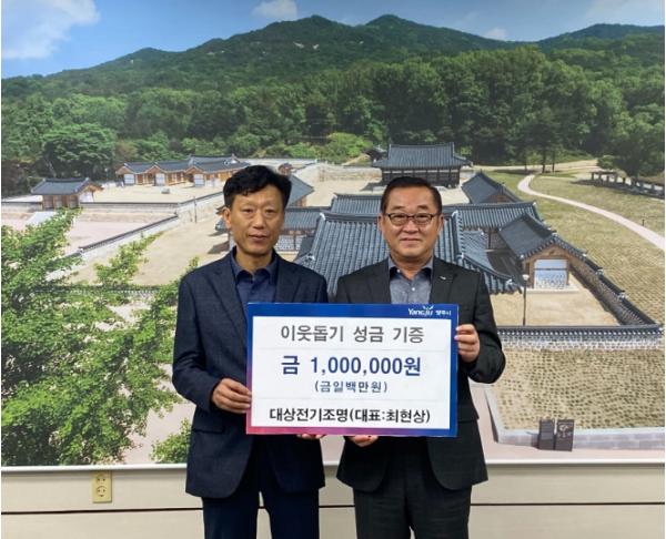 권순용 면장은 “지역사회 나눔문화 조성과 이웃사랑 실천에 손길을 내어 준 최현상·이한우 대표에게 깊은 감사의 마음을 전한다”며 “기탁해준 소중한 성금은 어려운 이웃에게 전달해 연말 온정을 전하고 기부의 의미를 되살릴 수 있도록 하겠다”고 말했다.