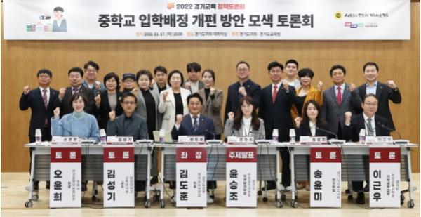 경기도의회 경제노동위원회 김도훈 의원(국민의힘, 비례)이 좌장을 맡은'중학교 입학배정 개편 방안 모색 토론회'가 11월 17일 경기도의회 대회의실에서 개최됐다. 경기도교육청과 경기도의회가 공동으로 주최하는 ‘2022 경기교육 정책토론회’의 일환으로 열린 이번 토론회는 중학교 입학배정에 대한 현황을 파악하고, 그에 따른 개편 방안을 논의할 필요성이 대두됨에 따라 개최됐다.